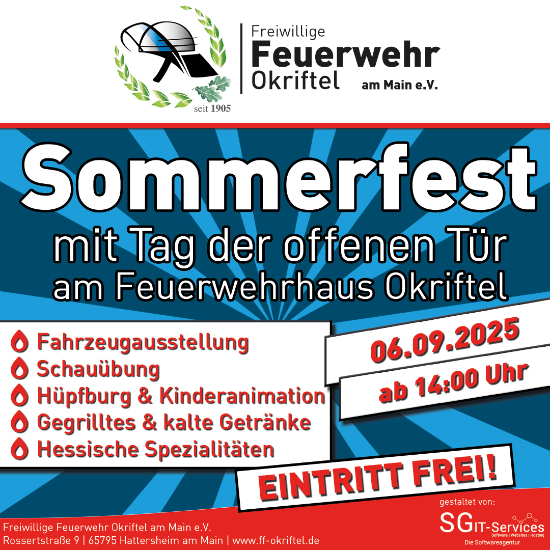 Am Samstag, 06.09.2025, hat die Feuerwehr Okriftel ihr traditionsreiches Fest erstmals unter neuem Namen gefeiert: Aus dem Äpplerfest wurde das Sommerfest mit Tag der offenen Tür. Bereits am Nachmittag ab