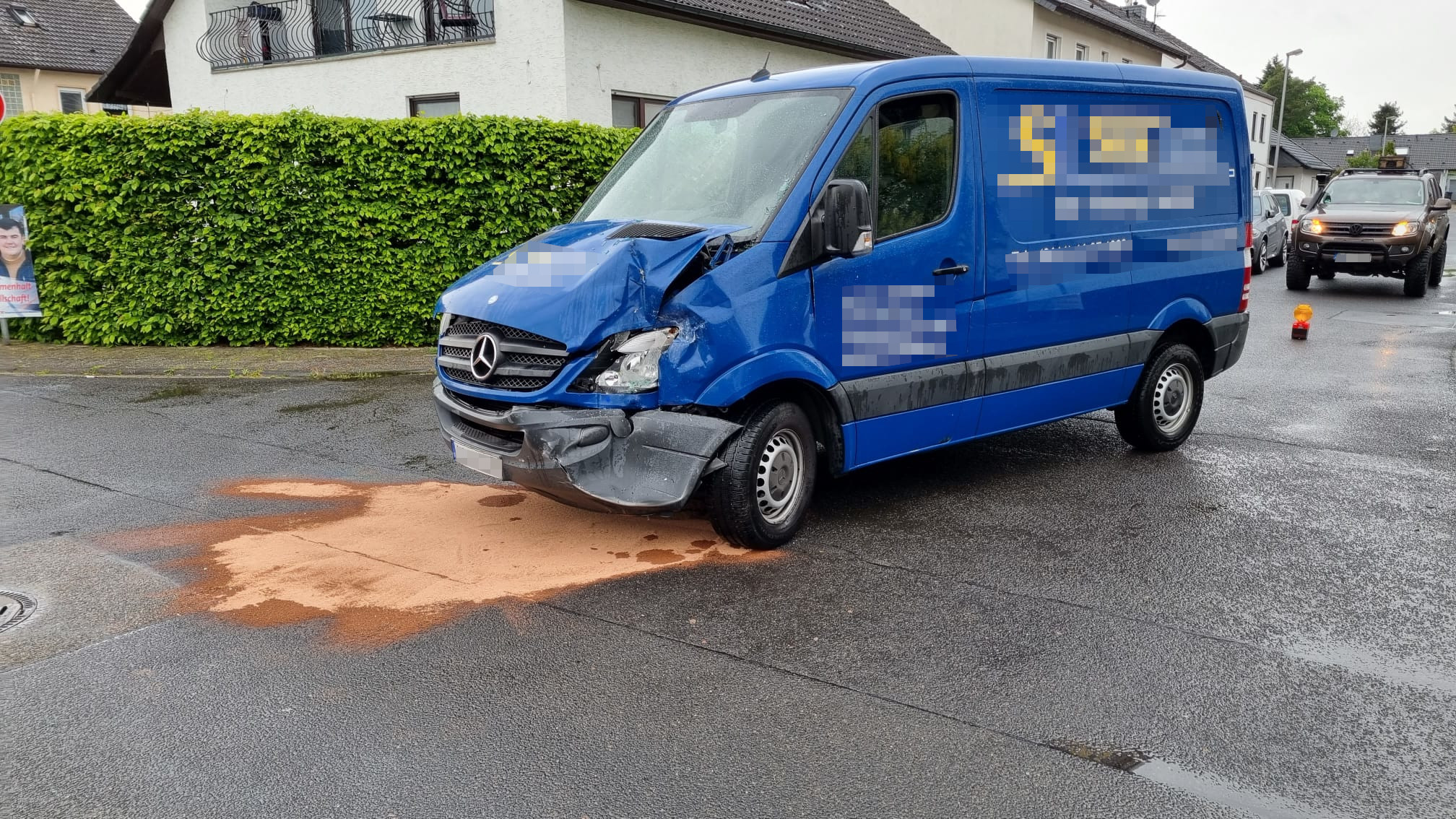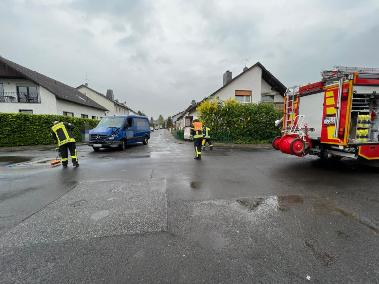 Die Betriebsstoffe wurden mit flüssig-, sowie streu-fähigem Ölbindemittel aufgenommen und die verunreinigte Fläche mit dem Frontsprühsystems des Löschfahrzeugs nachgespült.