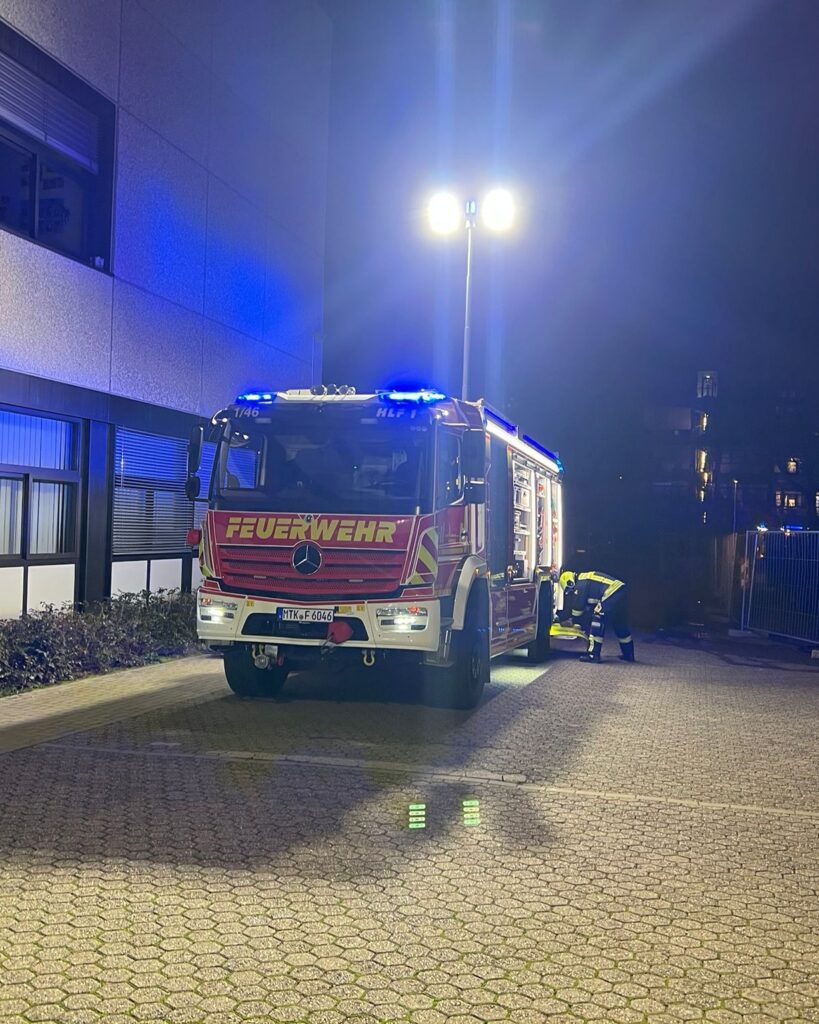 Aufgrund einer ausgelösten Brandmeldeanlage wurden wir zur Heinrich-Böll-Schule alarmiert. Bei der Kontrolle des betroffenen Bereichs nahm der Atemschutztrupp eine Rauchentwicklung wahr. Daher wurde das Einsatzstichwort auf „F2 – Feuer in Gebäude” erhöht.