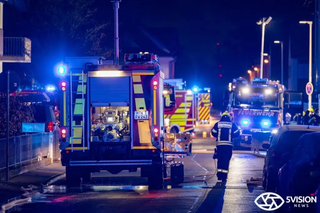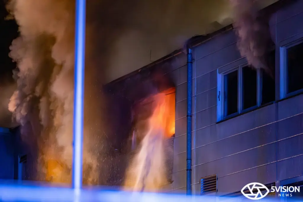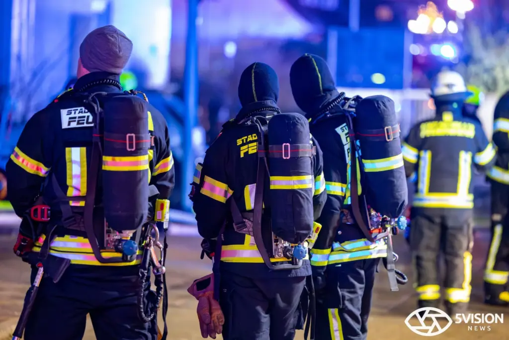 Wir wurden am 2. Dezember gegen 01:35 Uhr zu einem ausgedehnten Brand in einem Gewerbeobjekt in der Schulstraße alarmiert, da die Brandmeldeanlage des Gebäudes ausgelöst hatte. Beim Eintreffen der ersten Kräfte brannte es bereits im zweiten Obergeschoss, kurz darauf kam es zu einer Durchzündung. Das Alarmstichwort wurde schrittweise auf „F3 – Ausgedehnter Brand in Sondergebäuden“ erhöht.