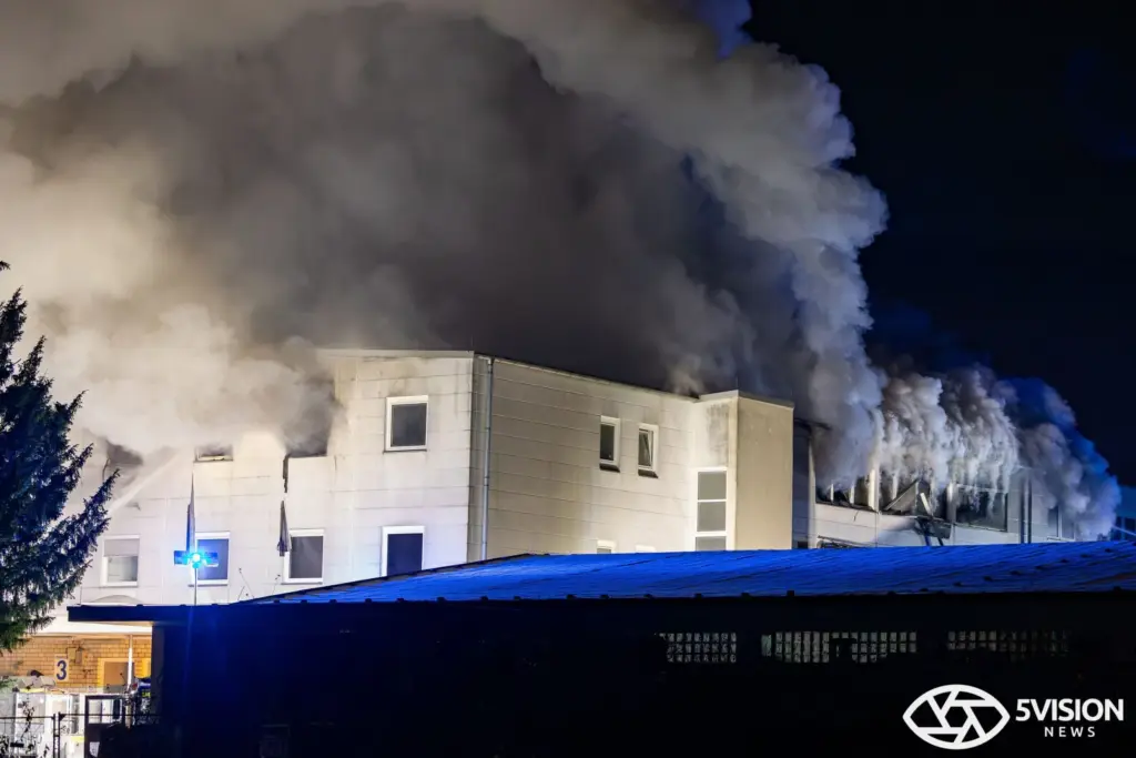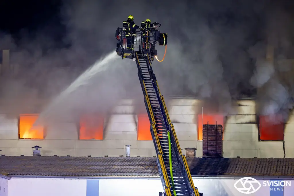 Der Brand konnte zwischenzeitlich nur von außen bekämpft werden. Über drei Drehleitern sowie mehrere Atemschutztrupps wurde das Feuer von verschiedenen Seiten aus gelöscht. Das Dach des Gebäudes ist entgegen anderslautender Berichte nicht eingestürzt. In dem betroffenen Gebäudeteil lagern nach aktuellen Informationen Akkus und Solarpaneele, die die Brandbekämpfung deutlich erschweren.