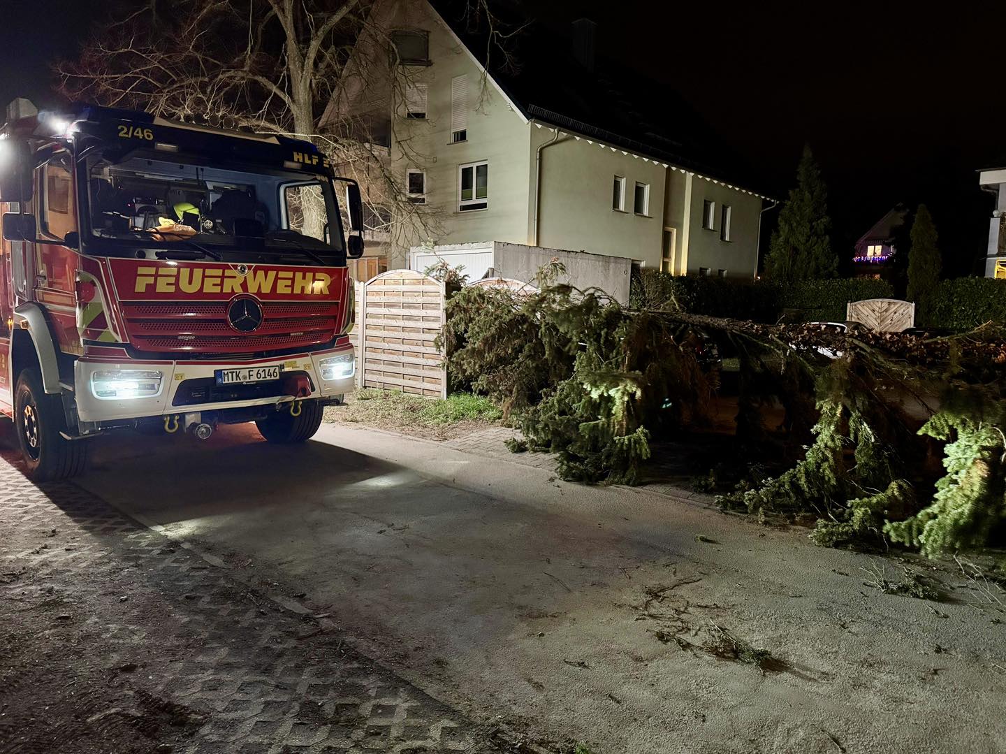 Wir wurden zu einem abgebrochenen Baum alarmiert, der einen Grundstückseingang versperrte. Mit einer Säge beseitigten wir den Baum.